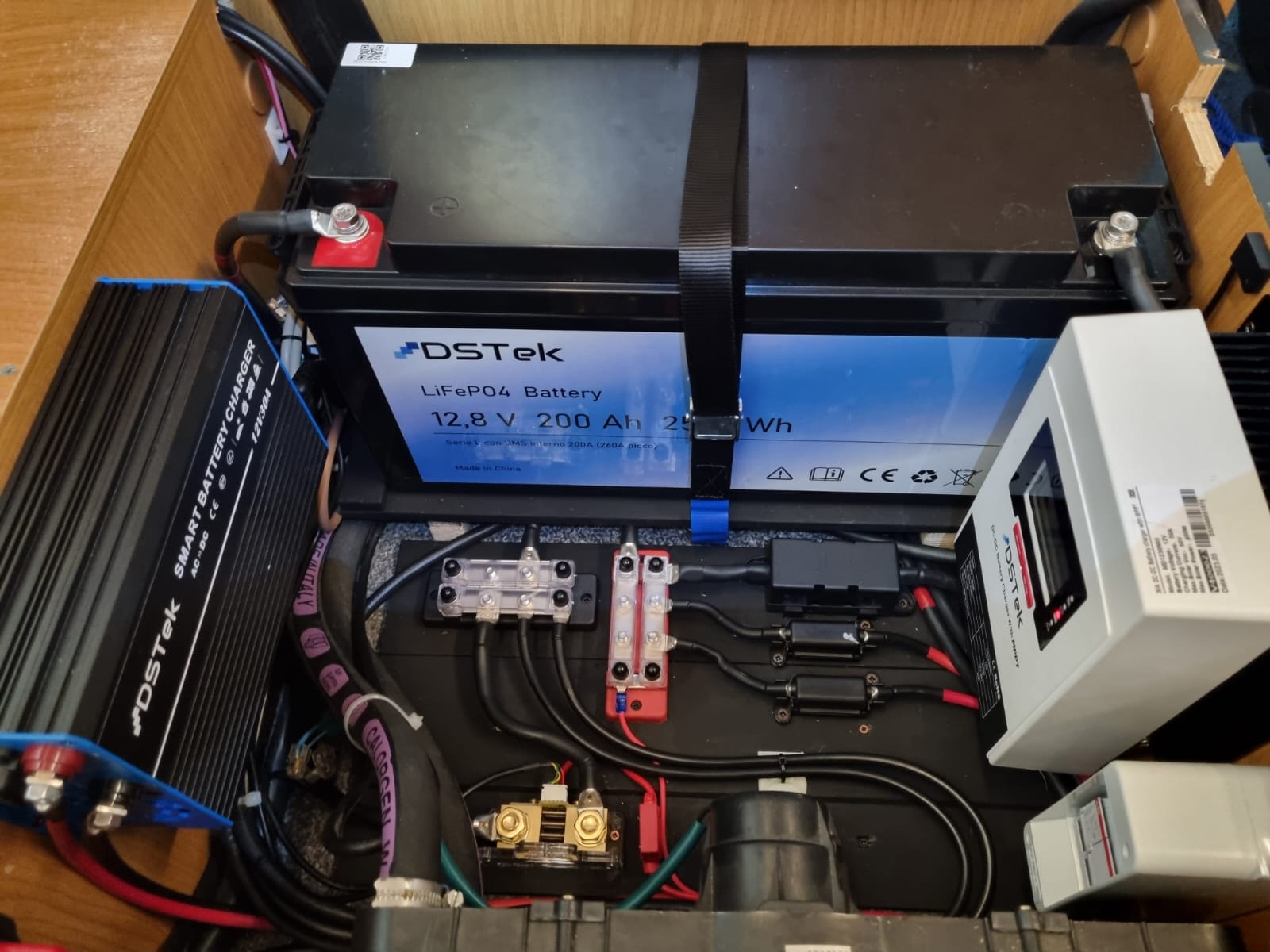 • Installazione impianto al Litio con due batterie da 150Ah collegate in parallelo per un totale di 300Ah di forza servizio.