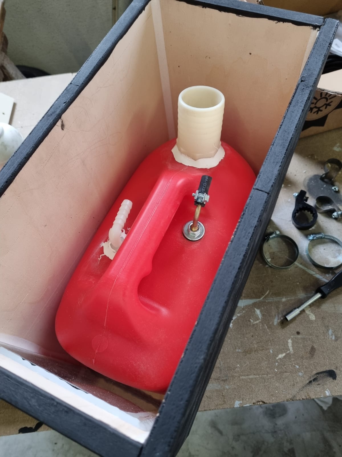 • Realizzazione di un box interno stagno per ospitare una tanica, progettato per garantire la sicurezza e la tenuta ermetica, particolarmente adatto a un furgone a benzina/metano.