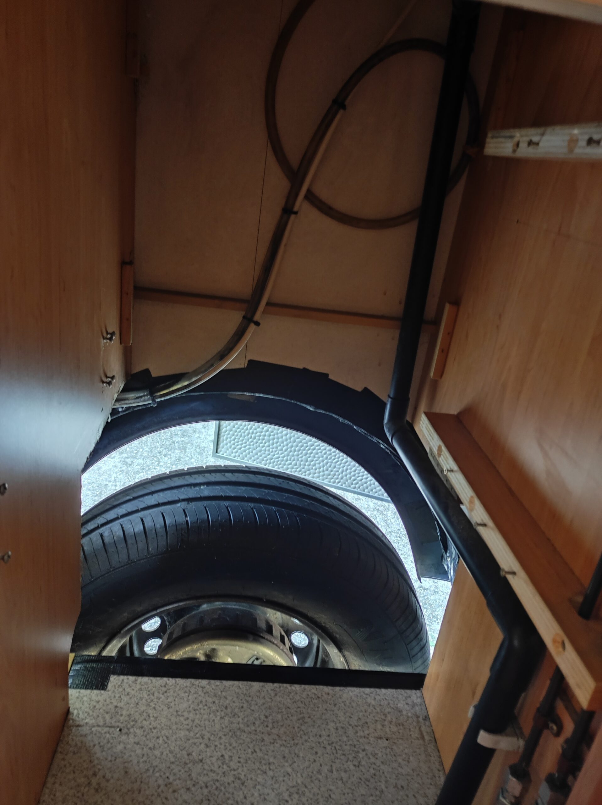 La gomma della roulotte è esplosa, causando un bel disastro: il parafango, l’impianto elettrico, idraulico e la fanaleria si sono rotti.